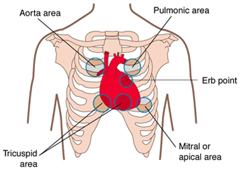 کانونهاي سمعي :سمع قلب معمولاً در چهار کانون اصلي صورت مي گيرد.